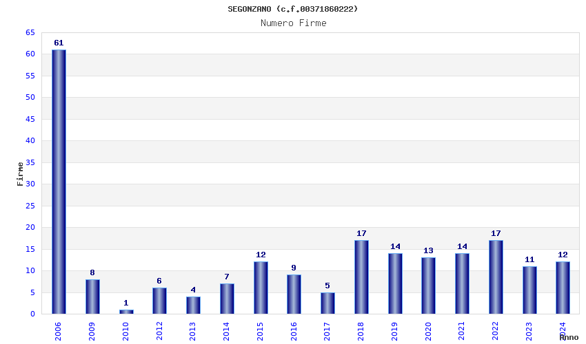 | Anno | Firme | Importi | Media | Naz. | Reg. | Prov. | Comu. |