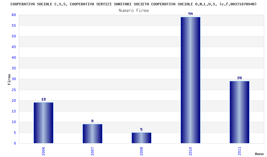| Anno | Firme | Importi | Media | Naz. | Reg. | Prov. | Comu. |
