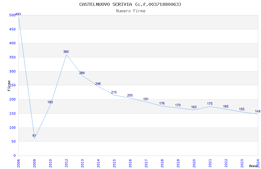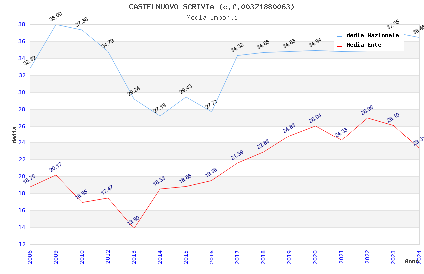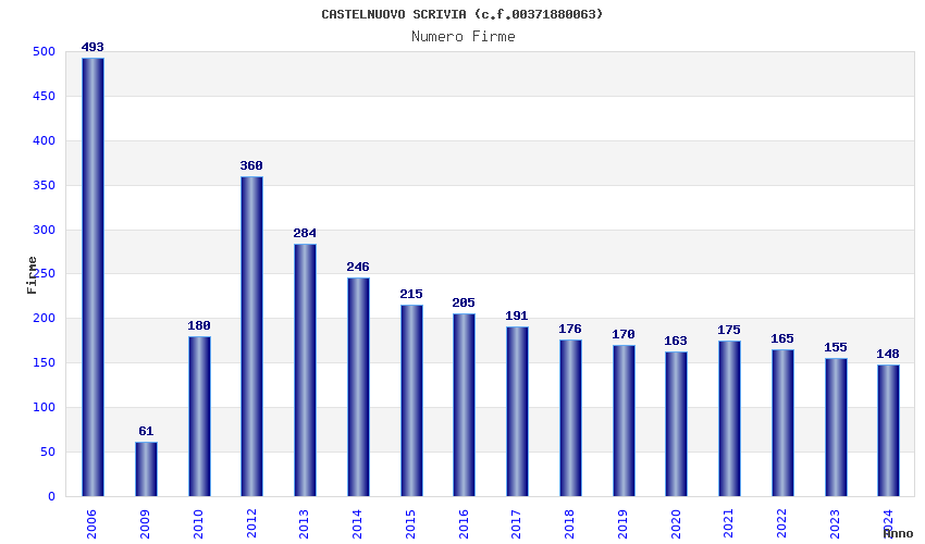 | Anno | Firme | Importi | Media | Naz. | Reg. | Prov. | Comu. |