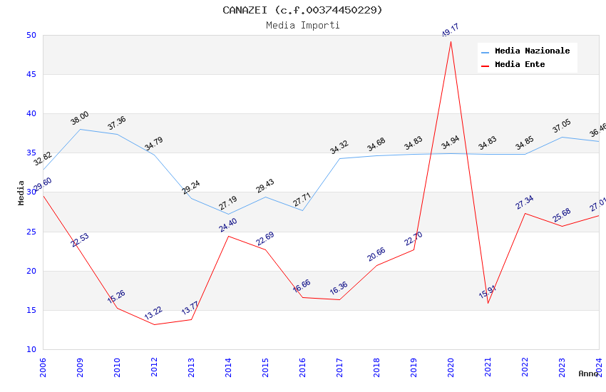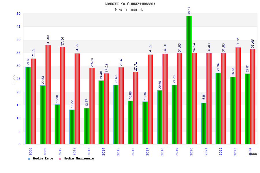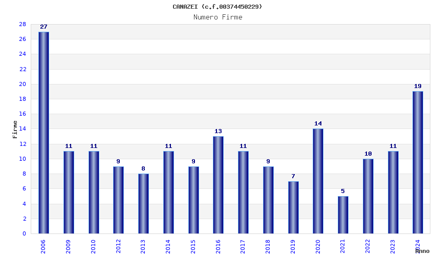 | Anno | Firme | Importi | Media | Naz. | Reg. | Prov. | Comu. |