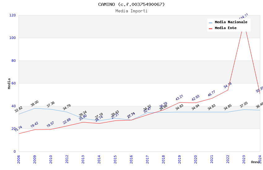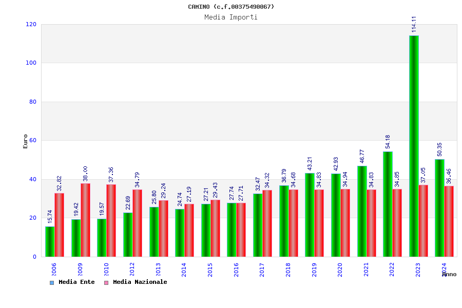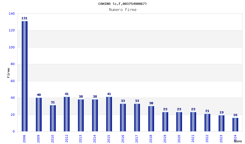 | Anno | Firme | Importi | Media | Naz. | Reg. | Prov. | Comu. |