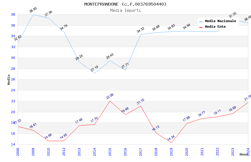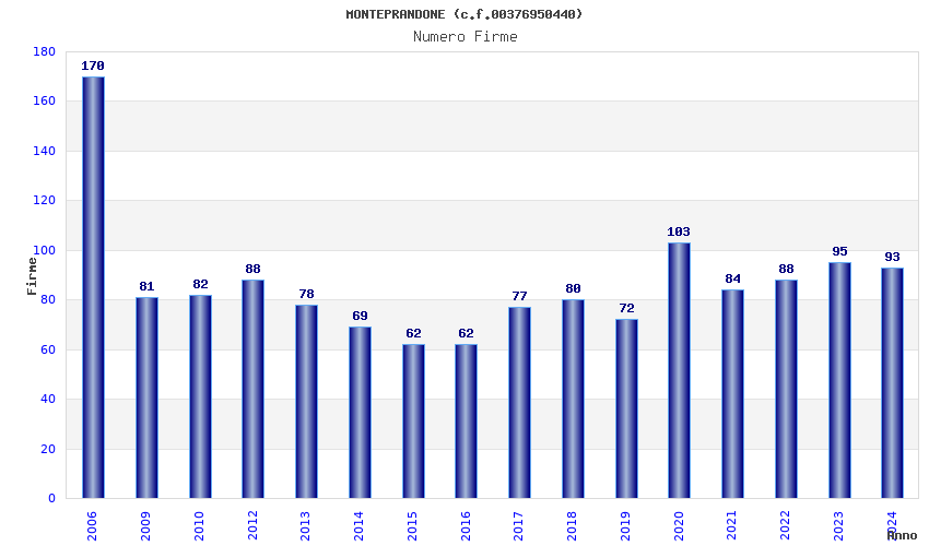| Anno | Firme | Importi | Media | Naz. | Reg. | Prov. | Comu. |