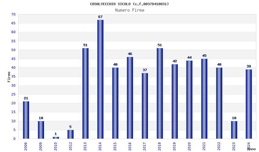 | Anno | Firme | Importi | Media | Naz. | Reg. | Prov. | Comu. |