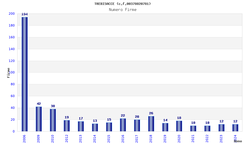 | Anno | Firme | Importi | Media | Naz. | Reg. | Prov. | Comu. |