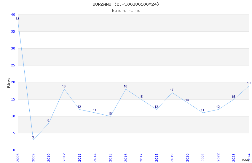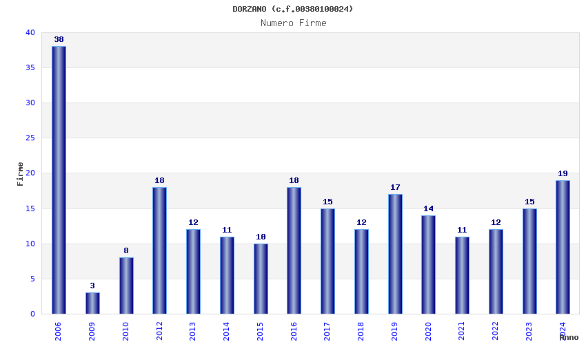 | Anno | Firme | Importi | Media | Naz. | Reg. | Prov. | Comu. |