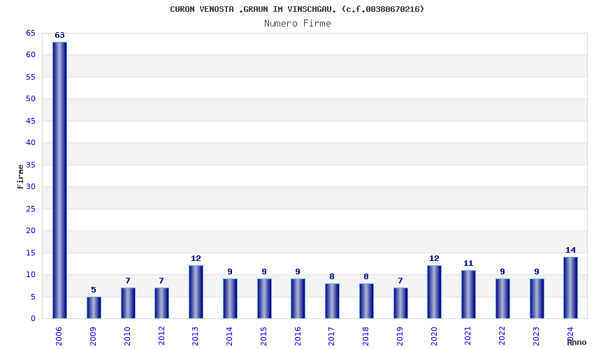| Anno | Firme | Importi | Media | Naz. | Reg. | Prov. | Comu. |