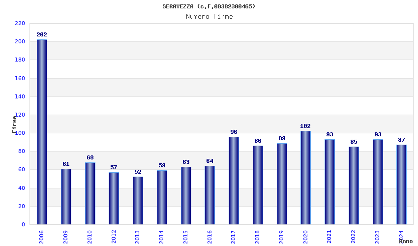 | 2006 | 202 | 3.708,08 | 18,36 | 10.371 | 687 | 58 | 3 |