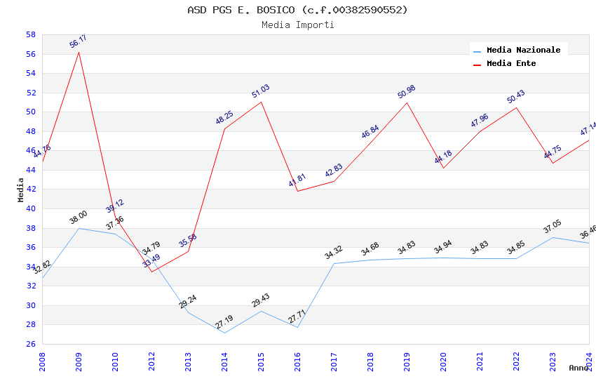 | Anno | Firme | Importi | Media | Naz. | Reg. | Prov. | Comu. |