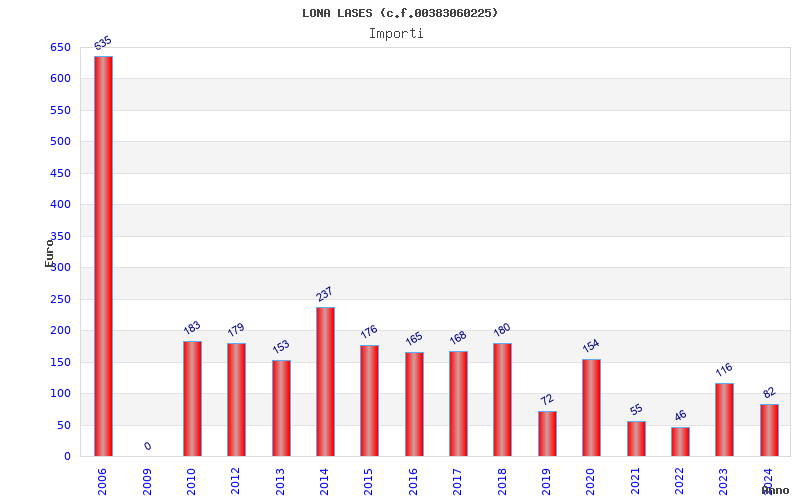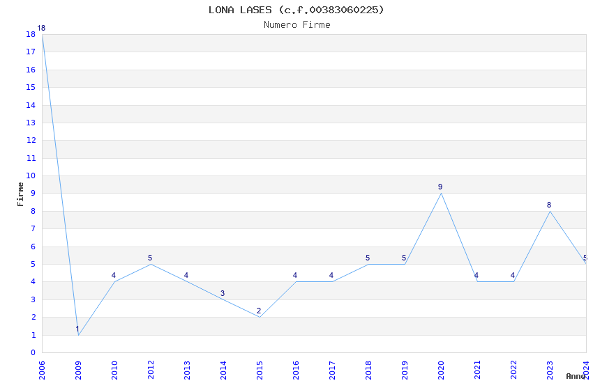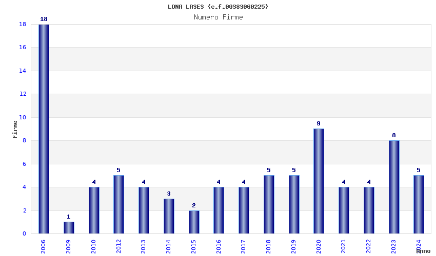 | Anno | Firme | Importi | Media | Naz. | Reg. | Prov. | Comu. |