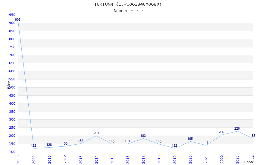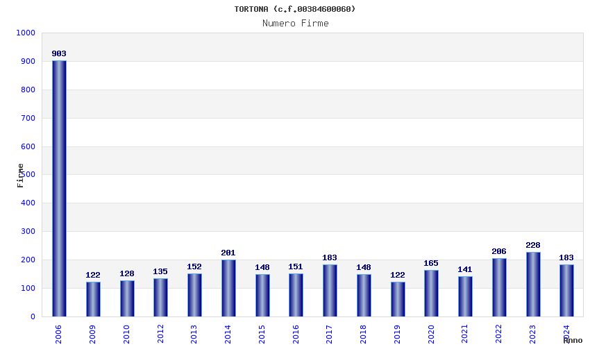 | Anno | Firme | Importi | Media | Naz. | Reg. | Prov. | Comu. |
