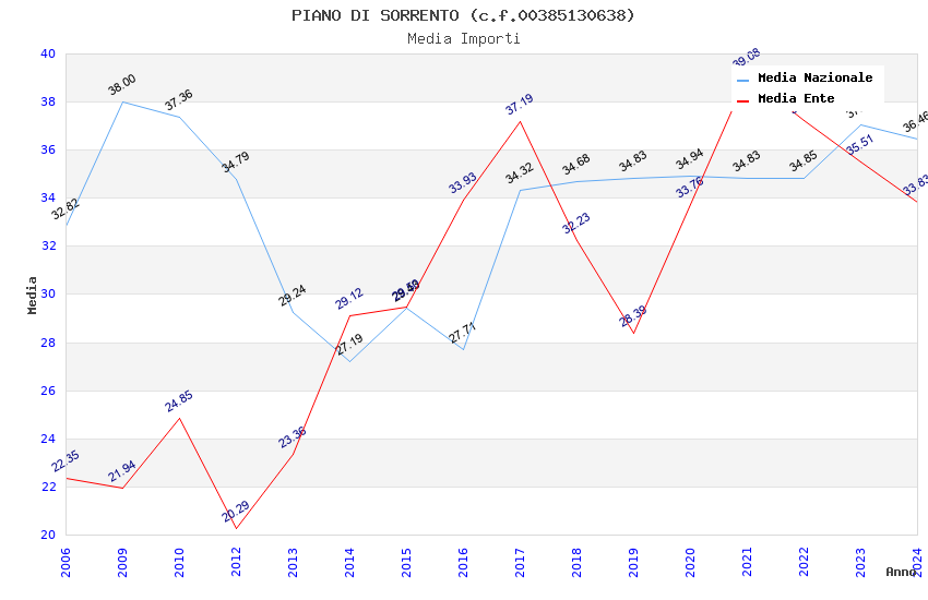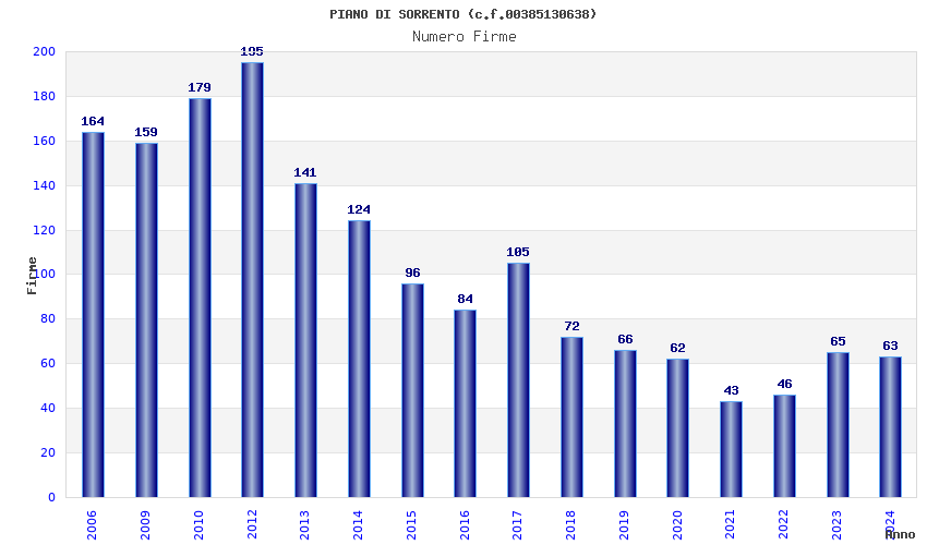 | Anno | Firme | Importi | Media | Naz. | Reg. | Prov. | Comu. |