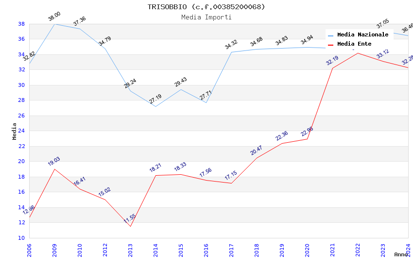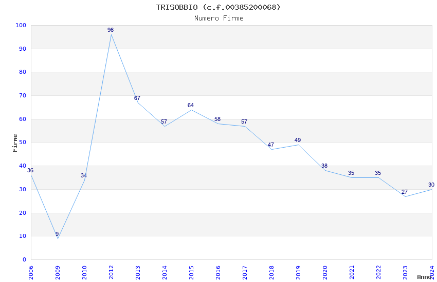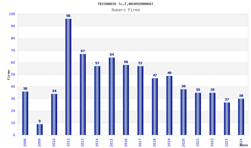 | Anno | Firme | Importi | Media | Naz. | Reg. | Prov. | Comu. |