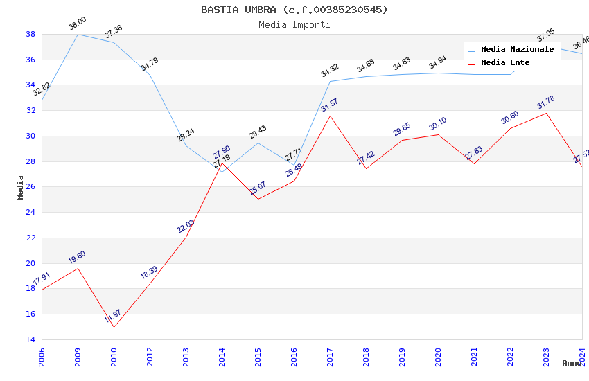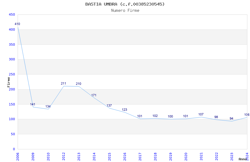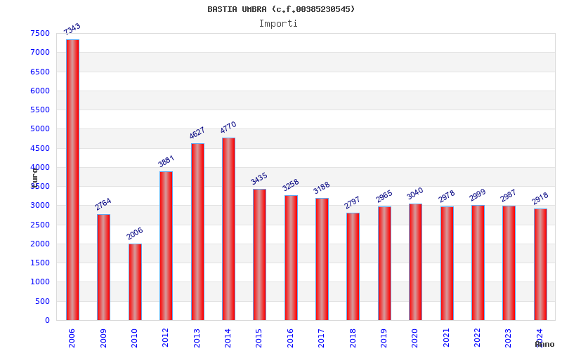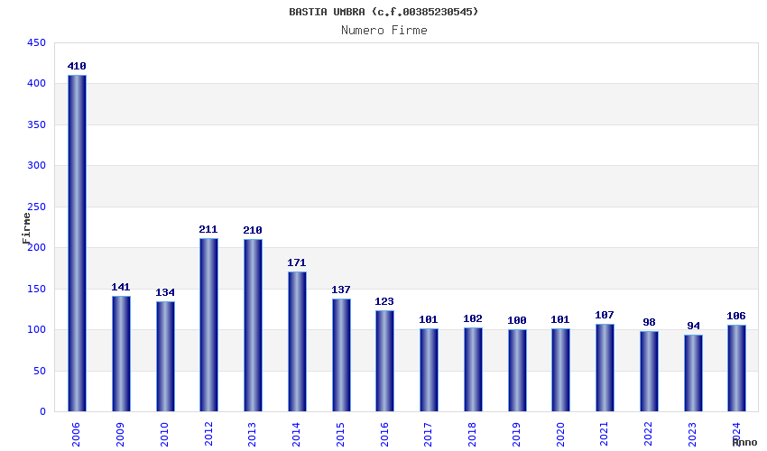 | Anno | Firme | Importi | Media | Naz. | Reg. | Prov. | Comu. |