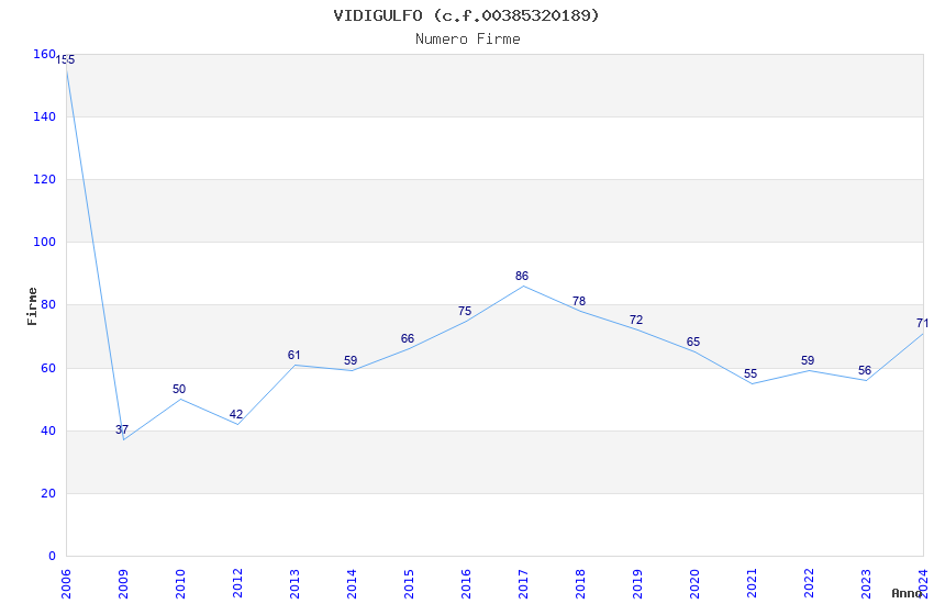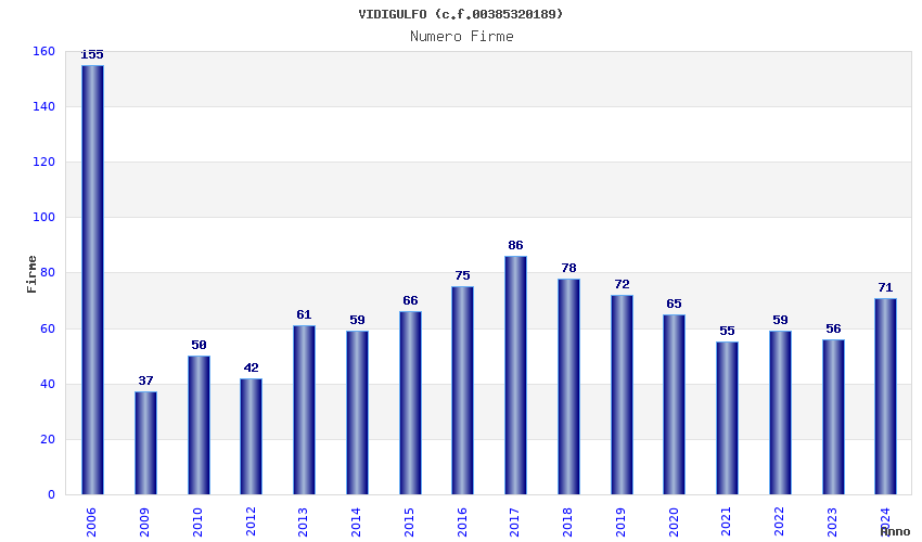 | Anno | Firme | Importi | Media | Naz. | Reg. | Prov. | Comu. |