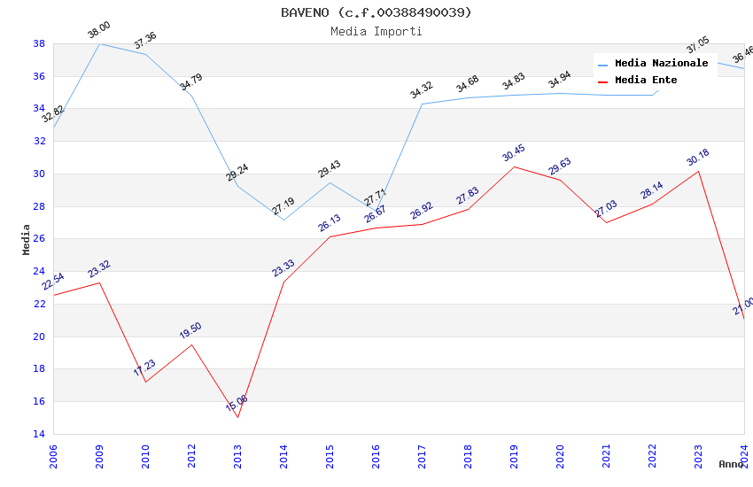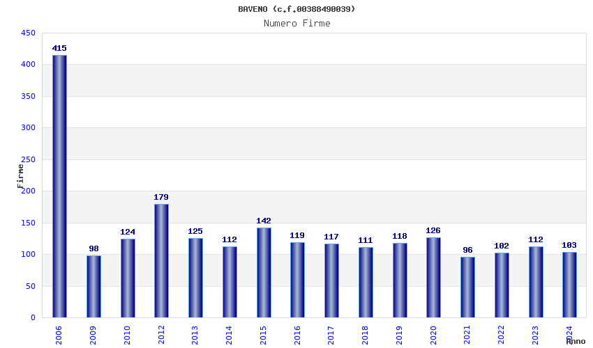 | Anno | Firme | Importi | Media | Naz. | Reg. | Prov. | Comu. |