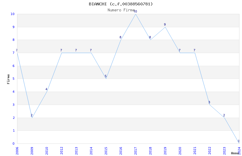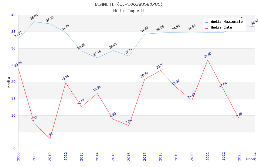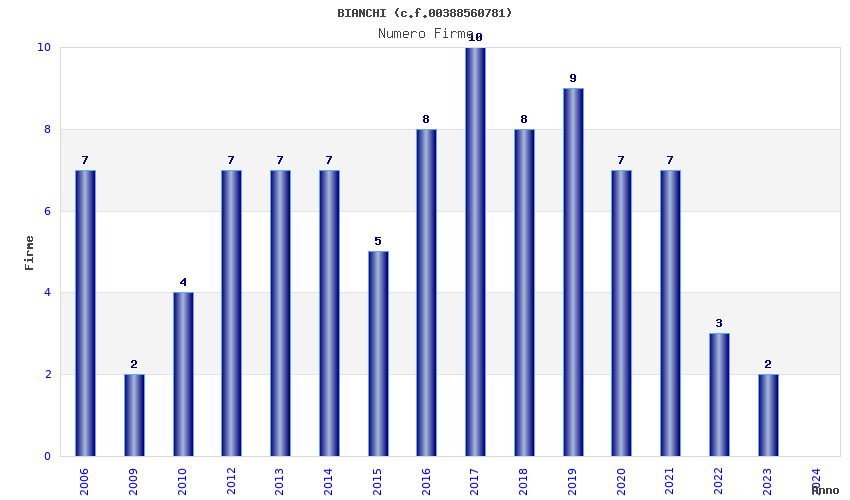 | Anno | Firme | Importi | Media | Naz. | Reg. | Prov. | Comu. |