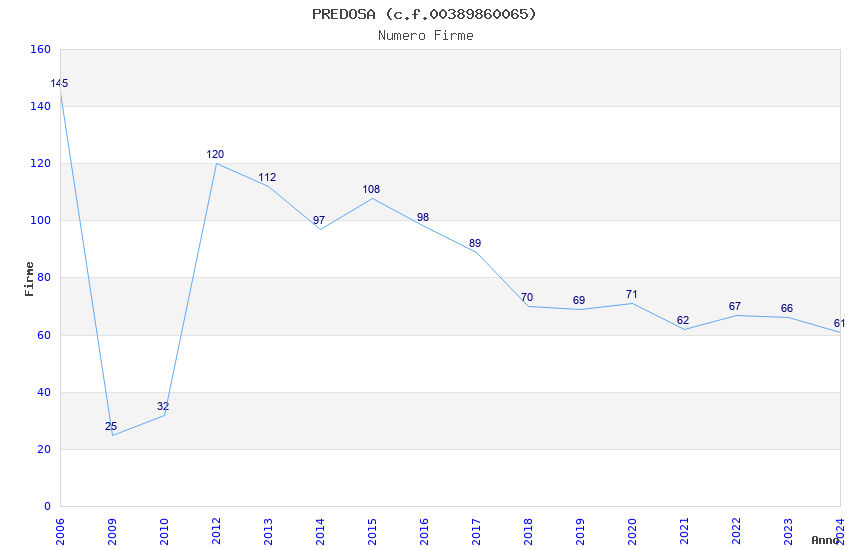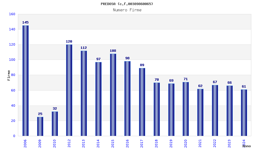 | Anno | Firme | Importi | Media | Naz. | Reg. | Prov. | Comu. |