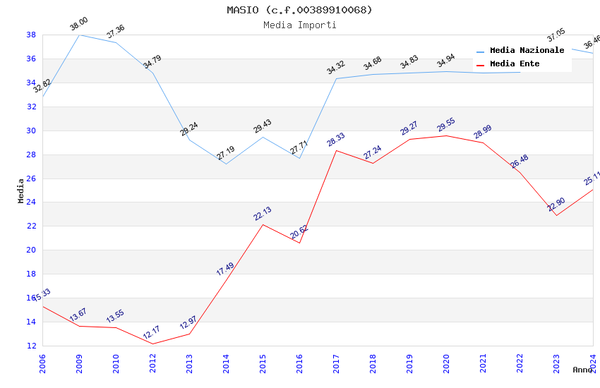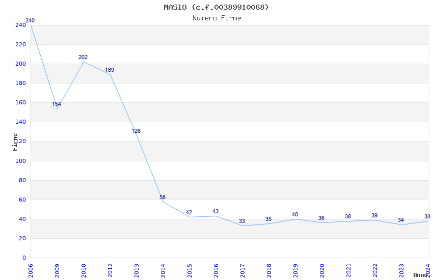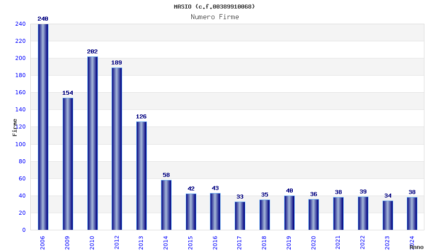| Anno | Firme | Importi | Media | Naz. | Reg. | Prov. | Comu. |