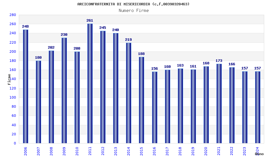 | Anno | Firme | Importi | Media | Naz. | Reg. | Prov. | Comu. |