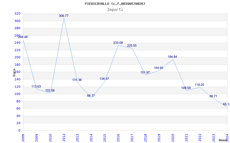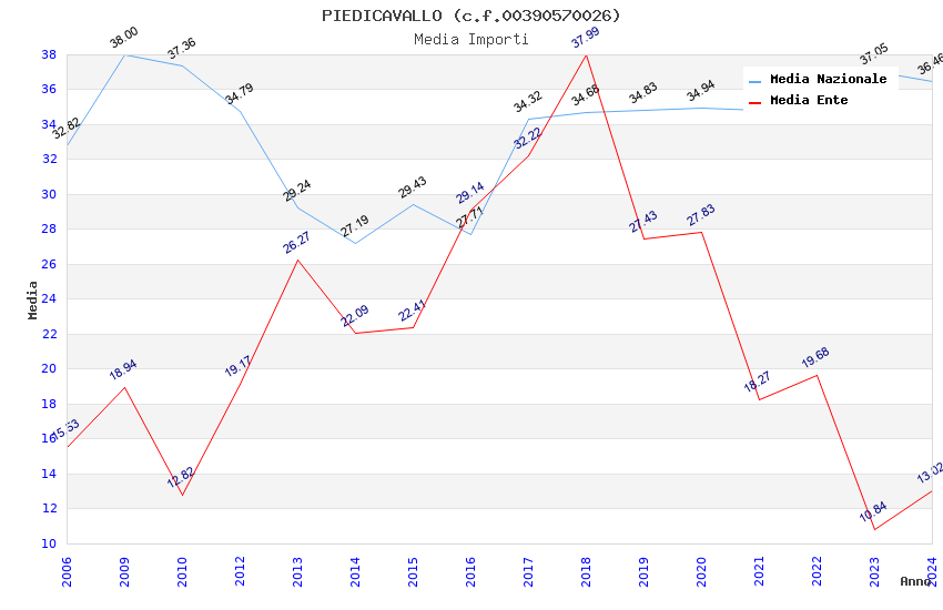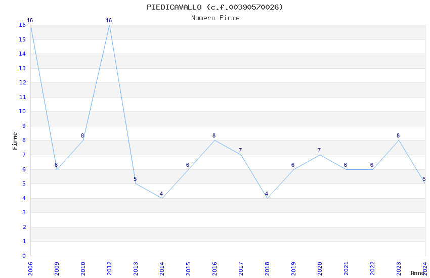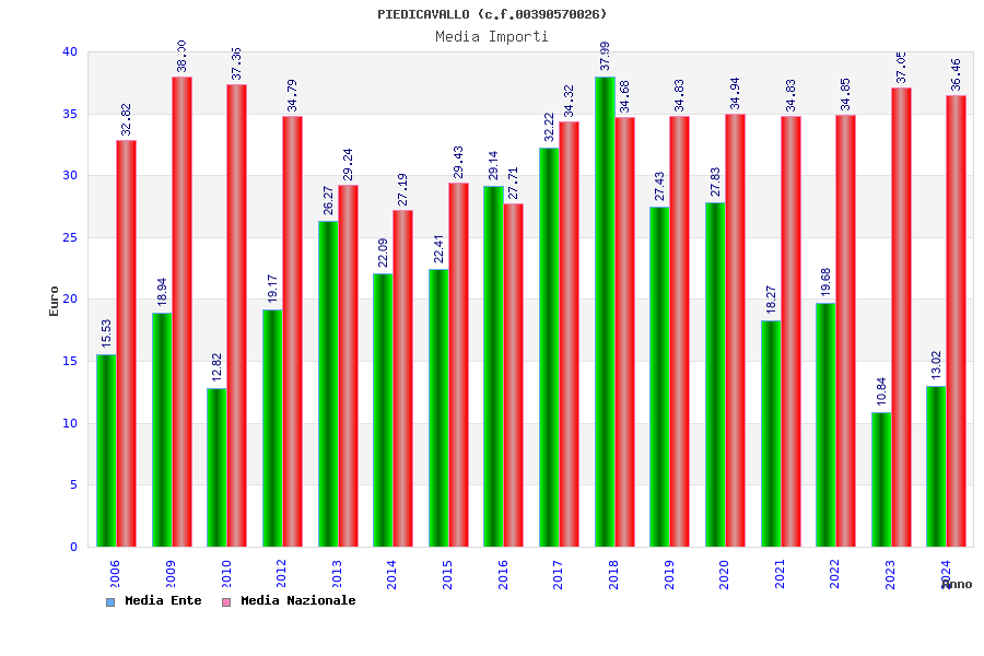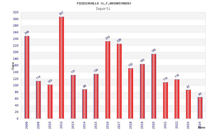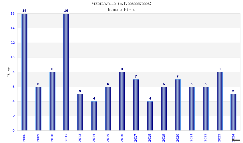 | Anno | Firme | Importi | Media | Naz. | Reg. | Prov. | Comu. |