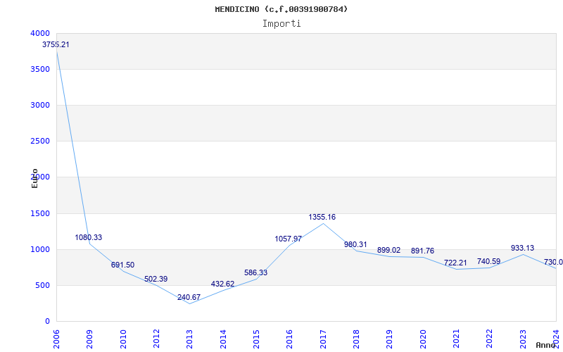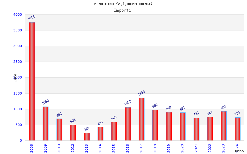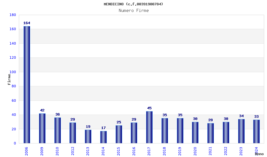 | Anno | Firme | Importi | Media | Naz. | Reg. | Prov. | Comu. |