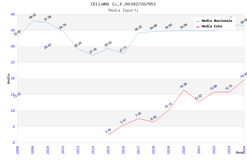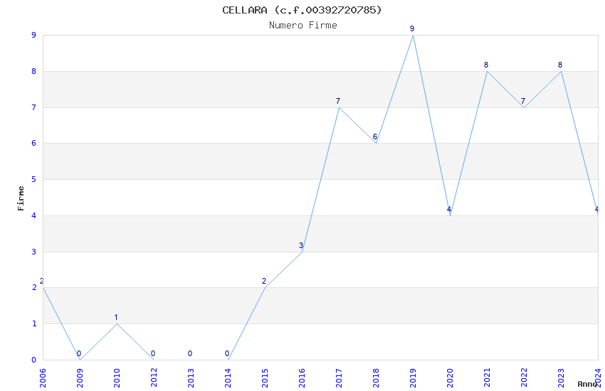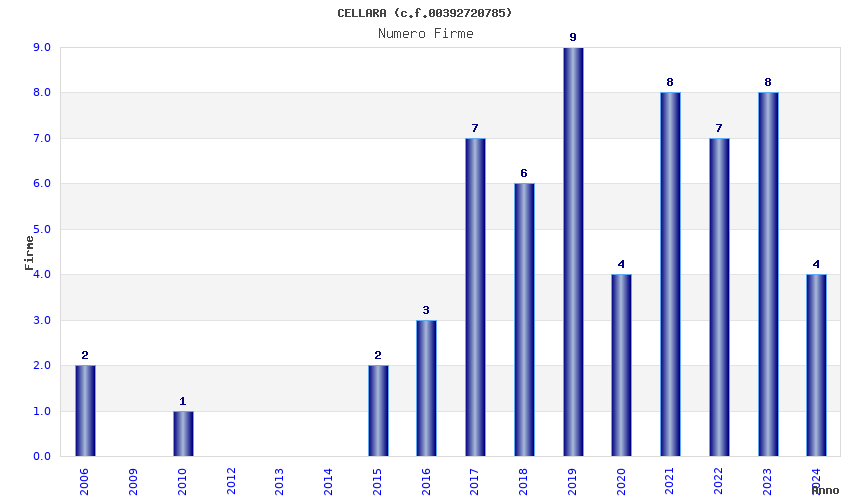 | Anno | Firme | Importi | Media | Naz. | Reg. | Prov. | Comu. |