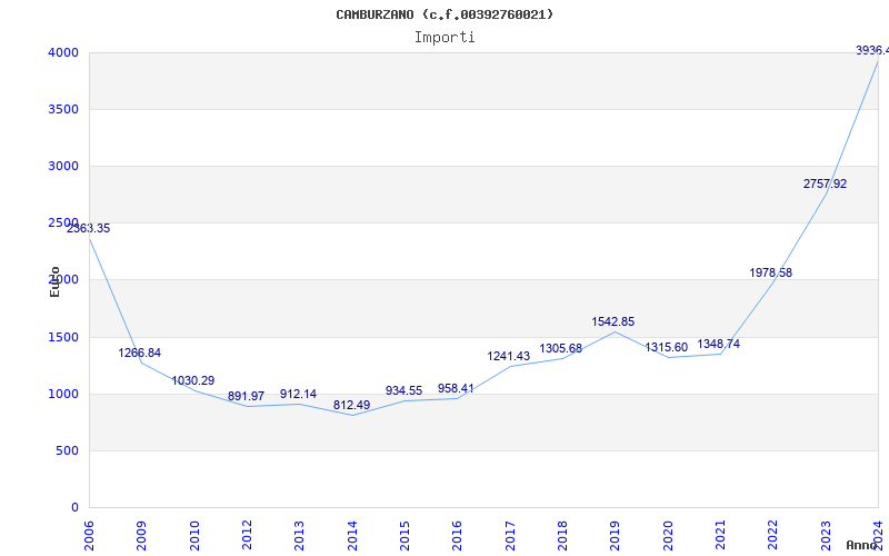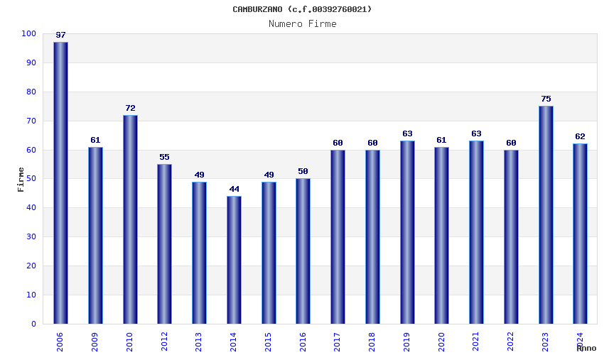 | Anno | Firme | Importi | Media | Naz. | Reg. | Prov. | Comu. |