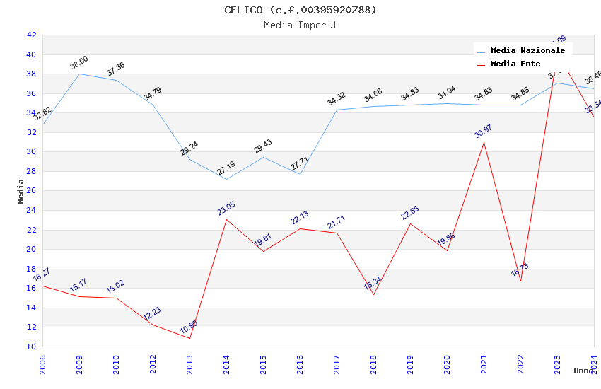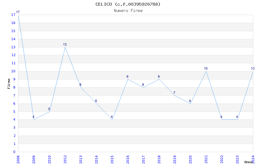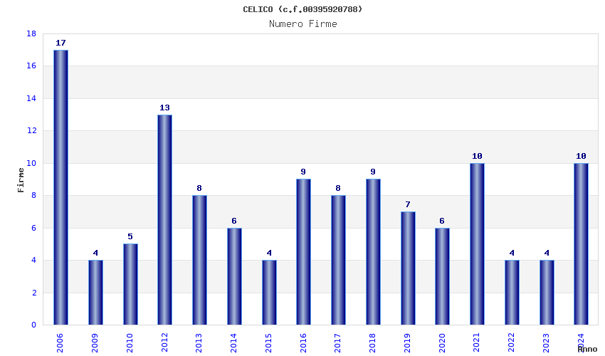 | Anno | Firme | Importi | Media | Naz. | Reg. | Prov. | Comu. |