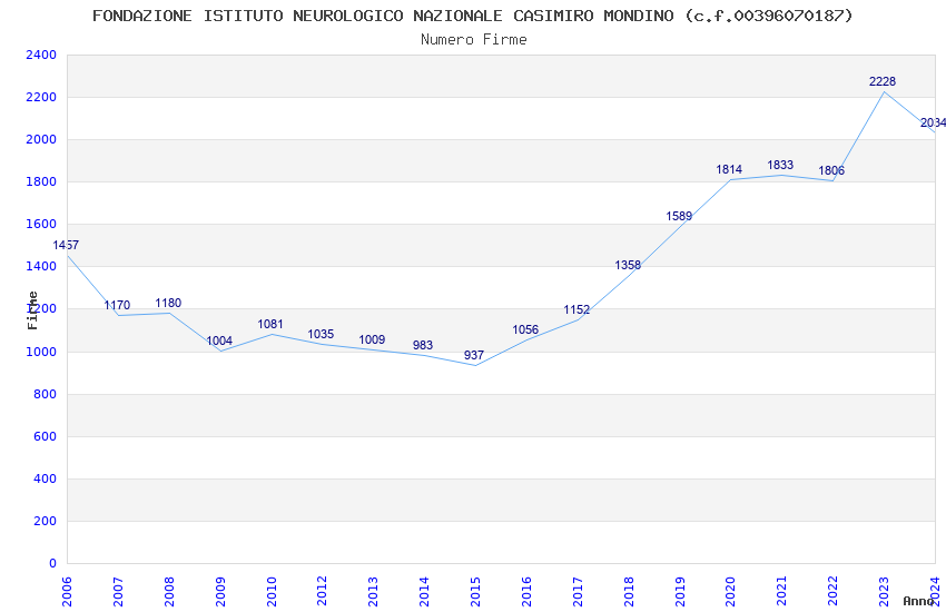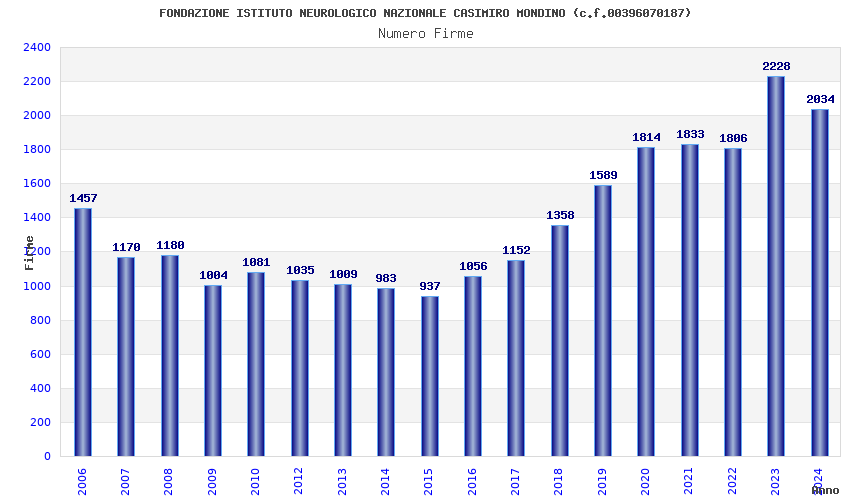 | Anno | Firme | Importi | Media | Naz. | Reg. | Prov. | Comu. |