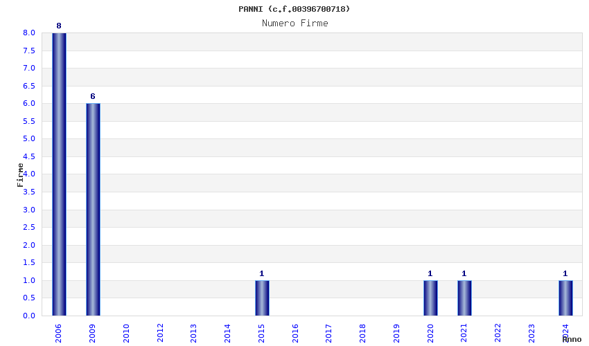 | Anno | Firme | Importi | Media | Naz. | Reg. | Prov. | Comu. |