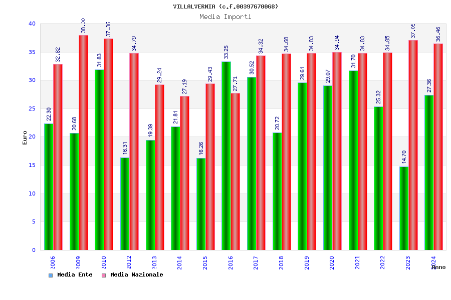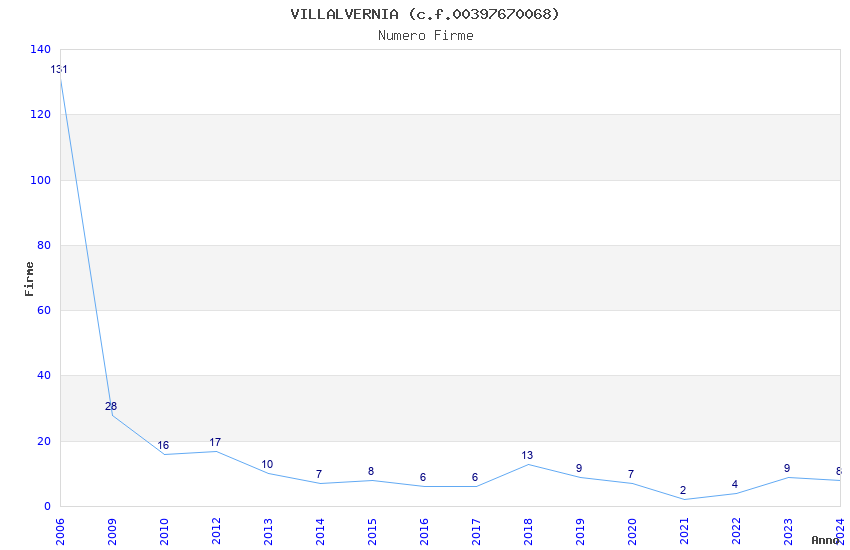 | Anno | Firme | Importi | Media | Naz. | Reg. | Prov. | Comu. |