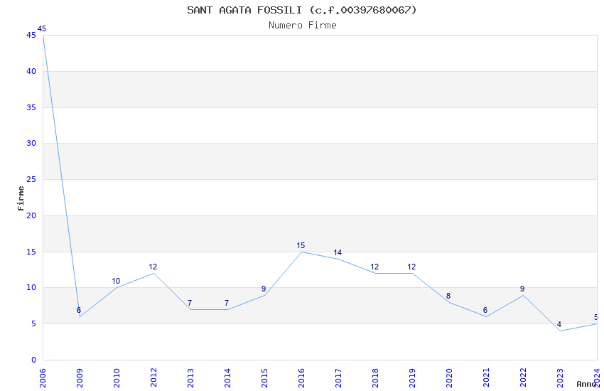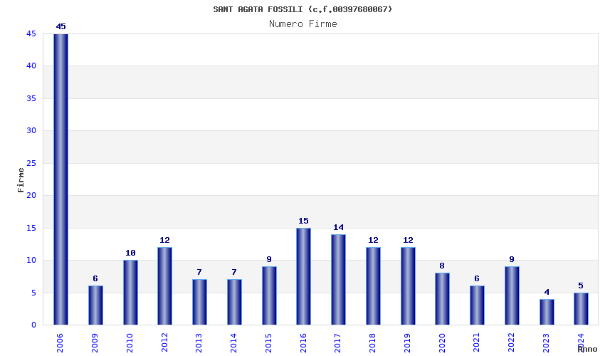 | Anno | Firme | Importi | Media | Naz. | Reg. | Prov. | Comu. |