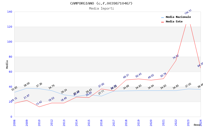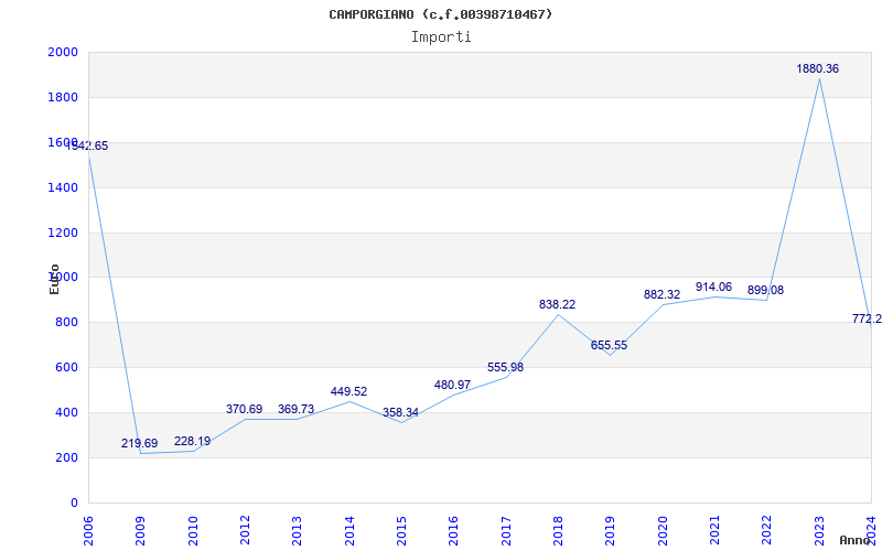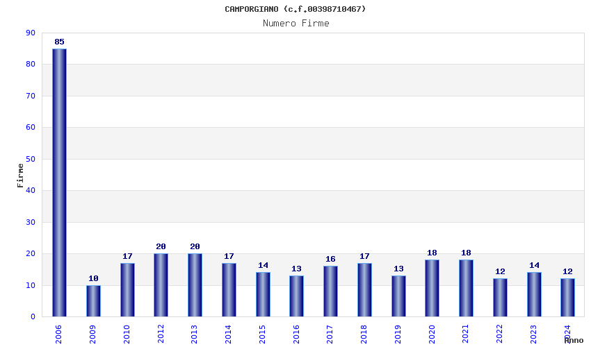 | Anno | Firme | Importi | Media | Naz. | Reg. | Prov. | Comu. |