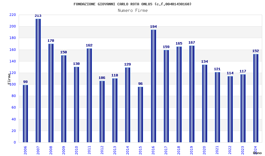 | Anno | Firme | Importi | Media | Naz. | Reg. | Prov. | Comu. |