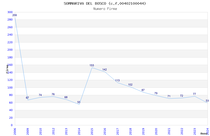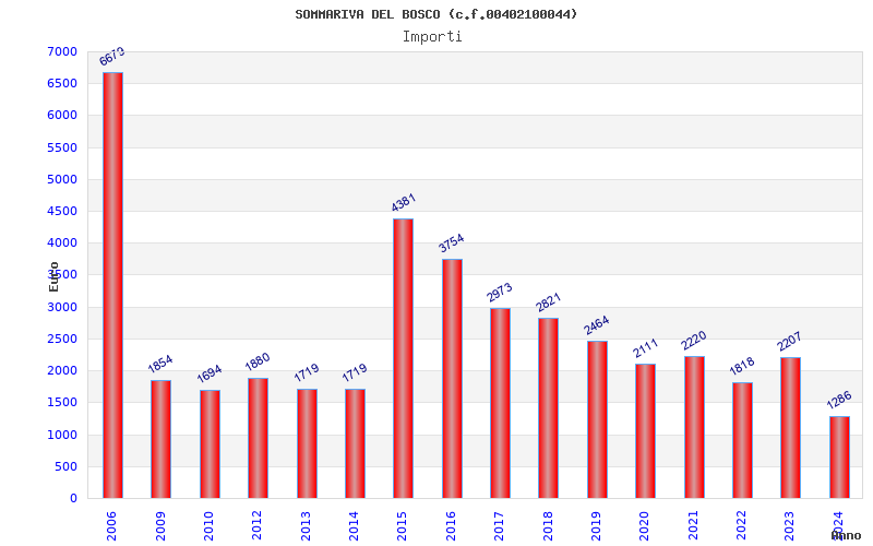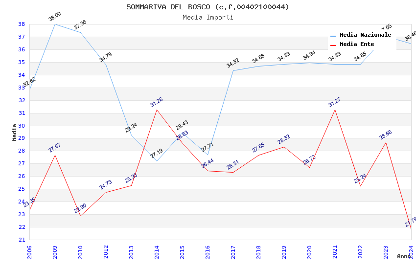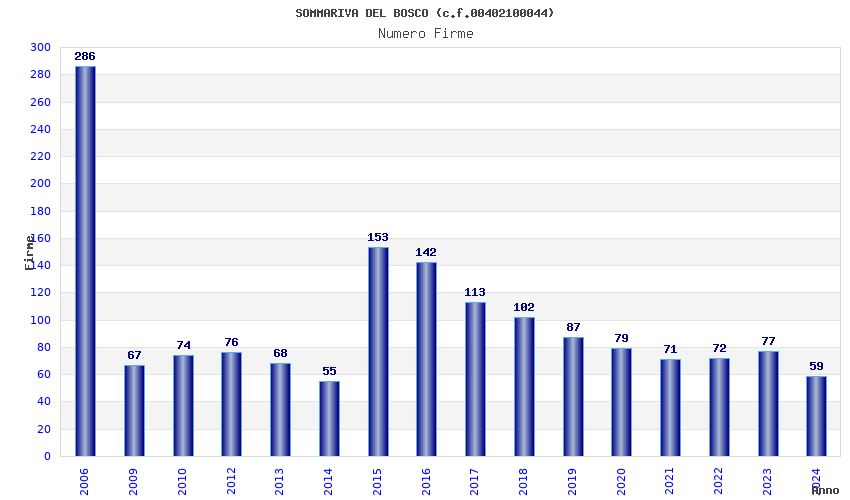 | Anno | Firme | Importi | Media | Naz. | Reg. | Prov. | Comu. |