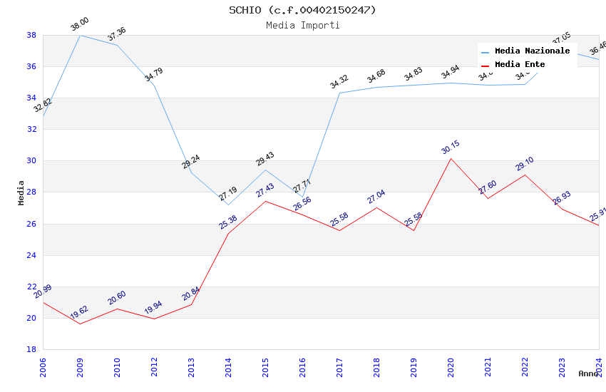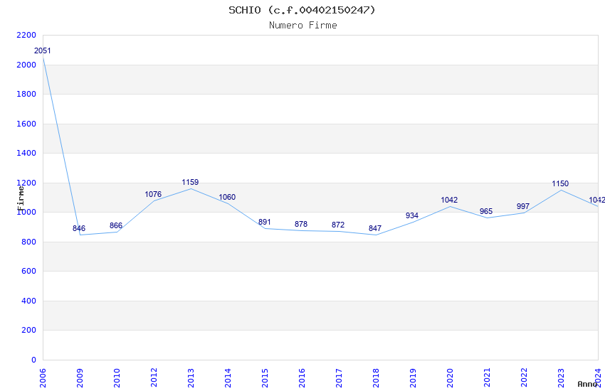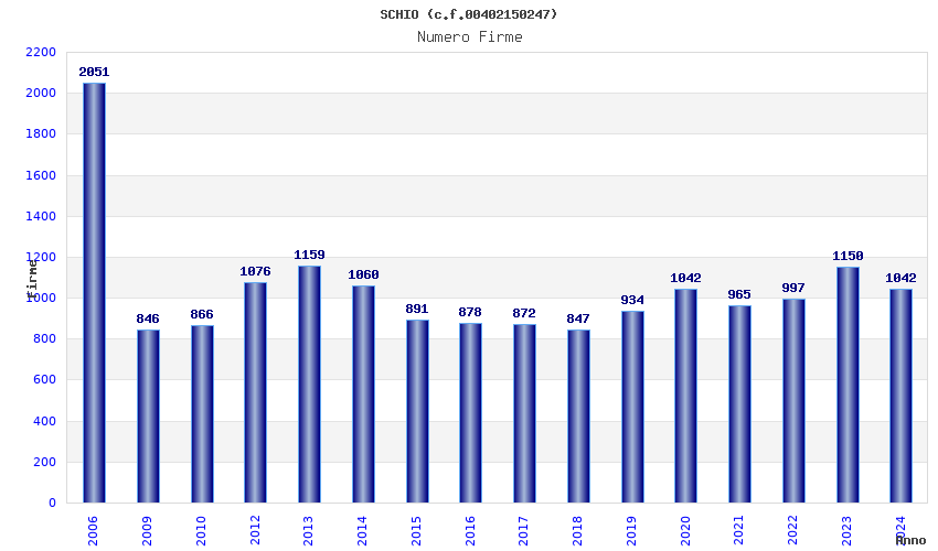 | Anno | Firme | Importi | Media | Naz. | Reg. | Prov. | Comu. |