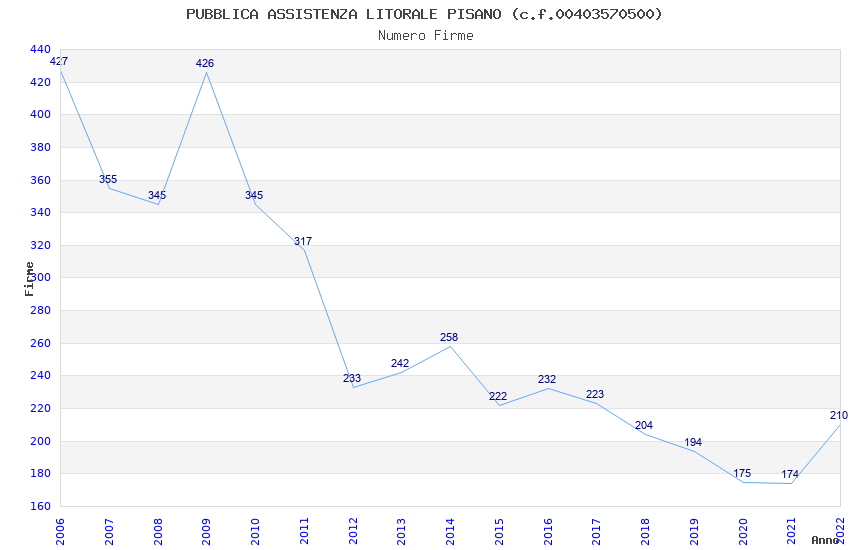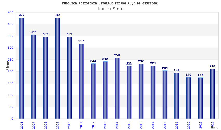 | 2022 | 210 | 6.533,17 | 31,11 | 8.055 | 525 | 64 | 31 |