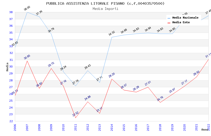 | Anno | Firme | Importi | Media | Naz. | Reg. | Prov. | Comu. |