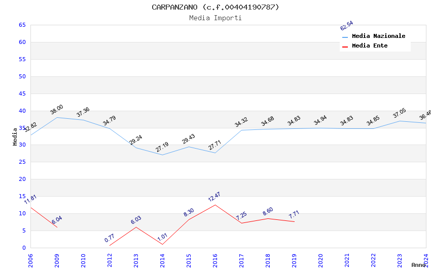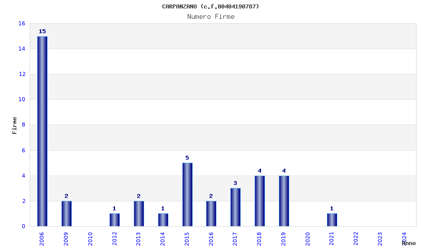| Anno | Firme | Importi | Media | Naz. | Reg. | Prov. | Comu. |