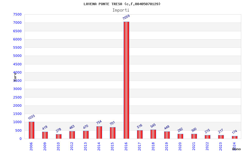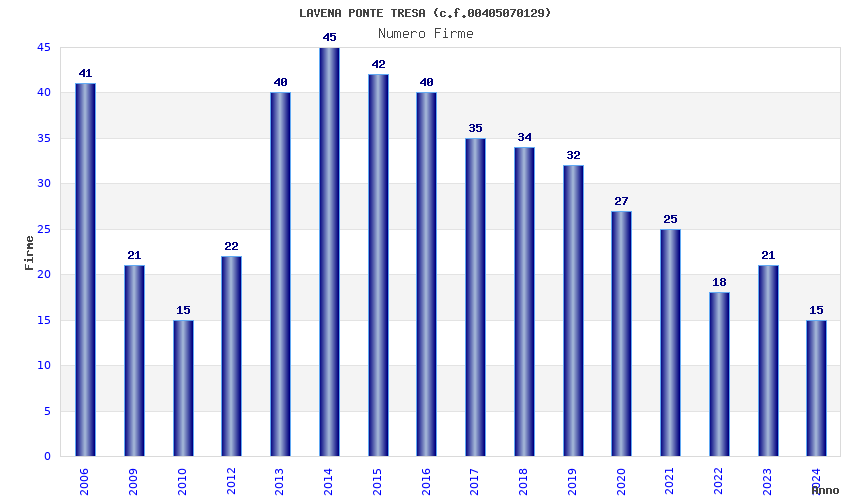 | Anno | Firme | Importi | Media | Naz. | Reg. | Prov. | Comu. |