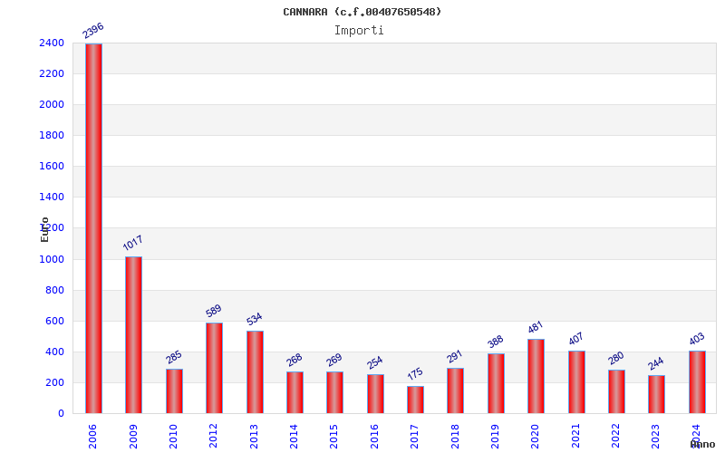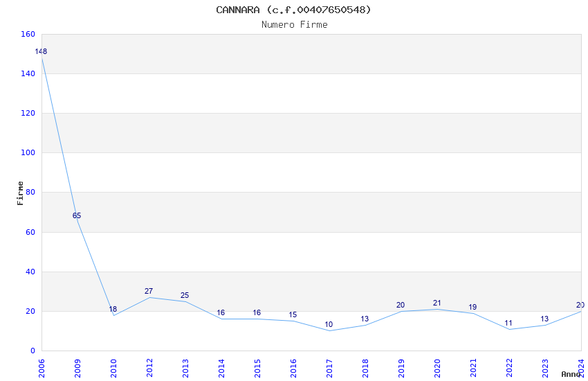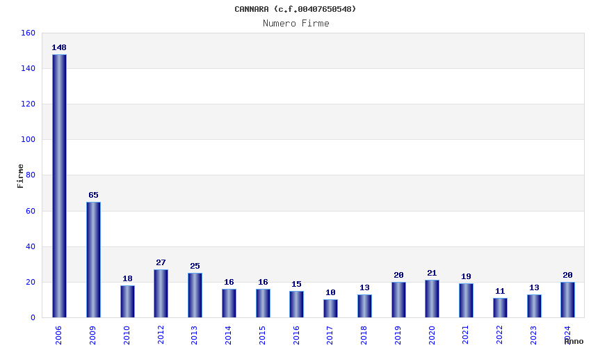 | Anno | Firme | Importi | Media | Naz. | Reg. | Prov. | Comu. |