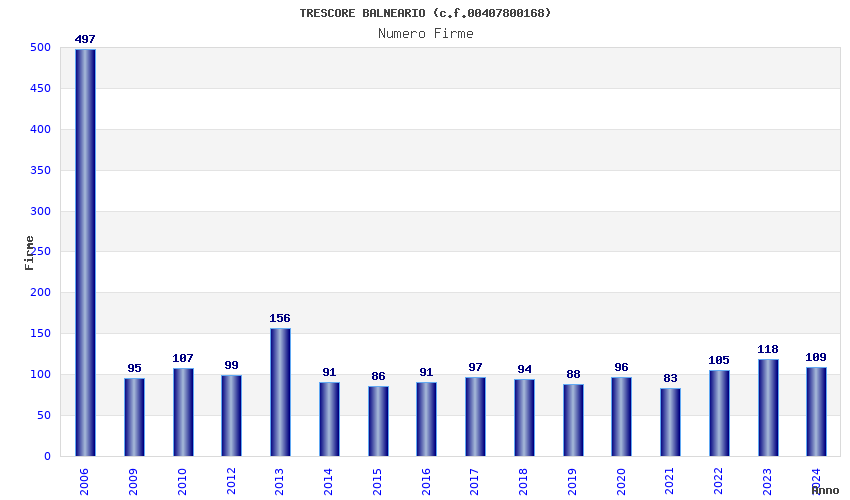 | Anno | Firme | Importi | Media | Naz. | Reg. | Prov. | Comu. |