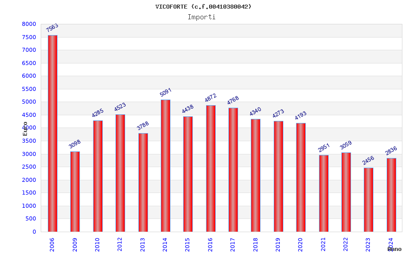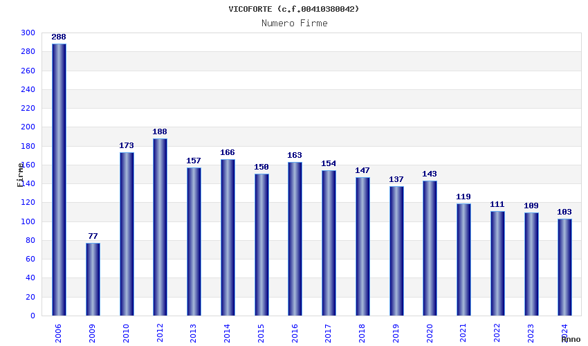 | Anno | Firme | Importi | Media | Naz. | Reg. | Prov. | Comu. |