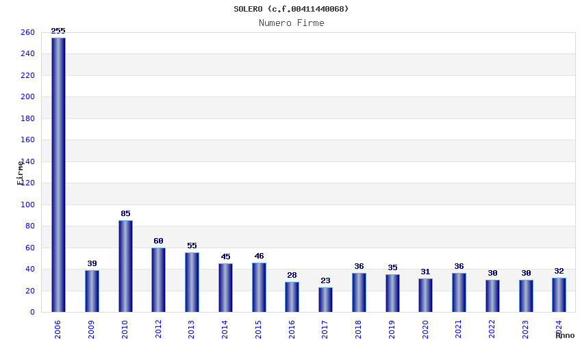 | Anno | Firme | Importi | Media | Naz. | Reg. | Prov. | Comu. |