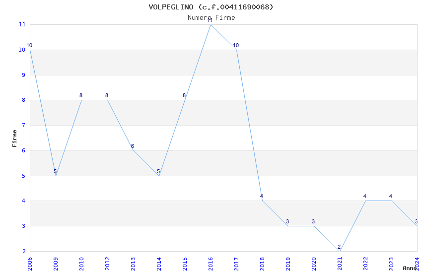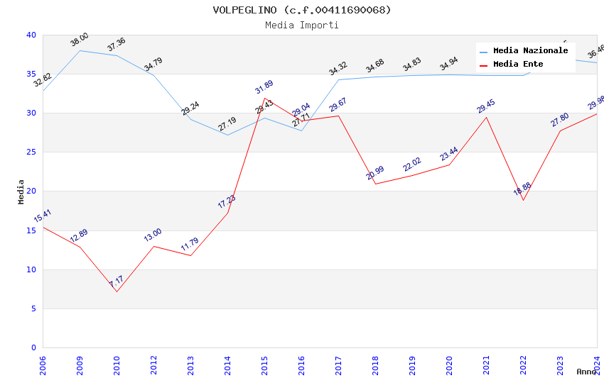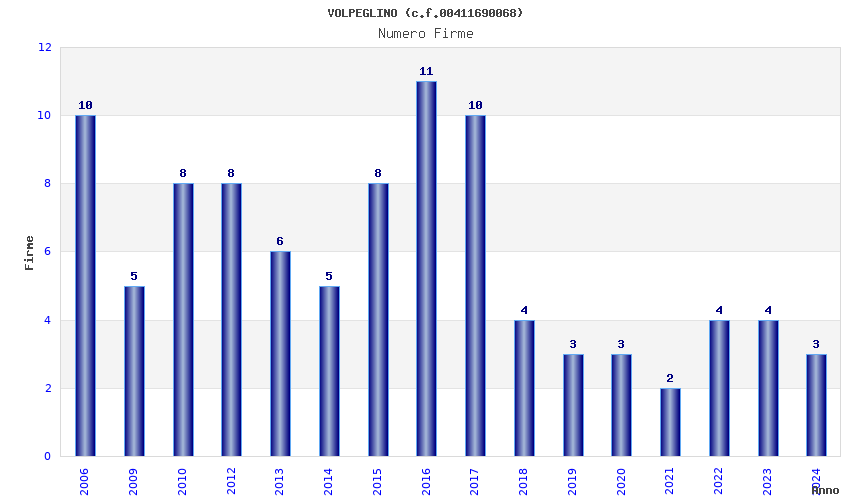 | Anno | Firme | Importi | Media | Naz. | Reg. | Prov. | Comu. |
