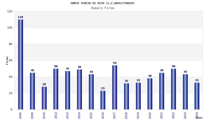 | Anno | Firme | Importi | Media | Naz. | Reg. | Prov. | Comu. |