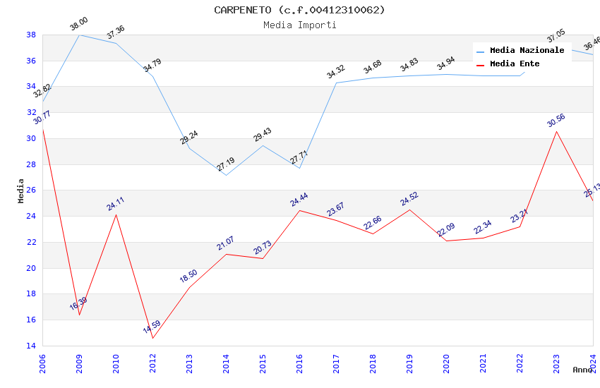 | Anno | Firme | Importi | Media | Naz. | Reg. | Prov. | Comu. |