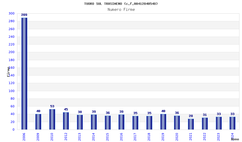 | Anno | Firme | Importi | Media | Naz. | Reg. | Prov. | Comu. |