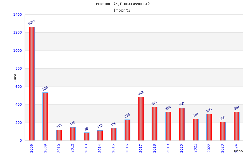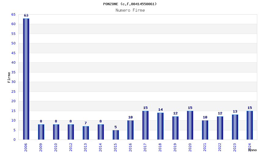 | Anno | Firme | Importi | Media | Naz. | Reg. | Prov. | Comu. |