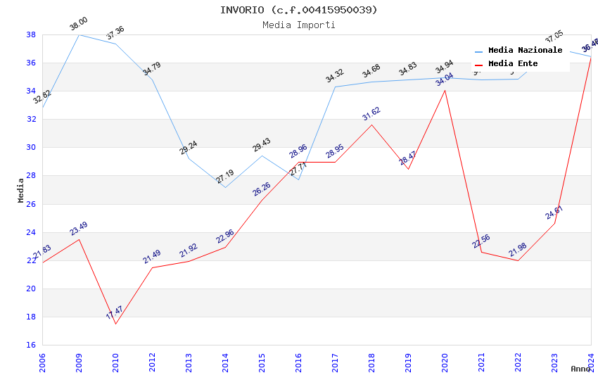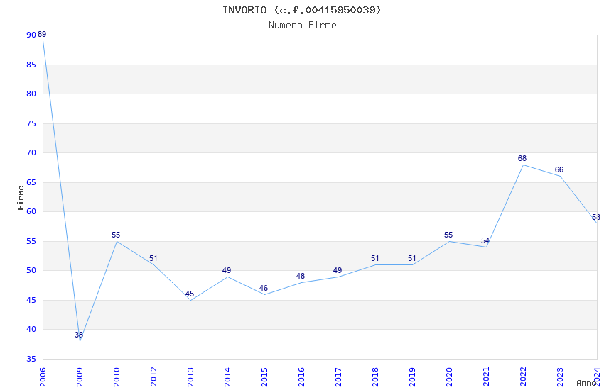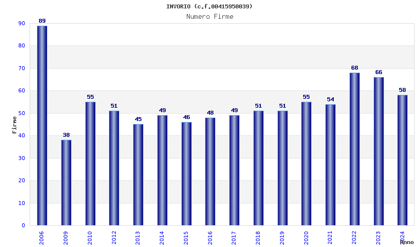 | Anno | Firme | Importi | Media | Naz. | Reg. | Prov. | Comu. |